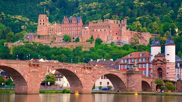 Al castillo de Heidelberg se puede llegar por el Bergbahn, un ferrocarril de montaña que va desde el Kornmarkt, o por un paseo de 15 minutos desde el casco antiguo. Este castillo del siglo XVI fue construido en piedra arenisca roja de Neckar sobre la ladera de una colina. Se encuentra a unos 195 metros sobre Heidelberg y es uno de los mejores ejemplos de la arquitectura renacentista alemana.