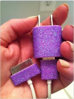 3. ? Este DIY es ideal para decorar pero también para identificar nuestros cargadores, sobre todo cuando en la misma casa hay varios con el mismo. Aquí en mi casa pasa mucho que no sabemos cual es cual, asi que es perfecto. Puedes usar barnices de uña escarchado o puedes usar pega y micro-escarcha.