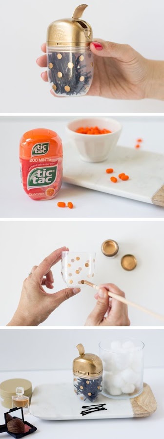8. ? Otro uso para los tic tac, aunque este es un poco mas grande, pero con los pequeños creo que también funcionan. En esta pintaron la tapa y le hicieron puntitos dorados, para darle un toque mas chic.