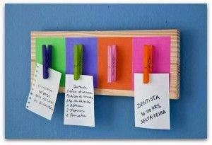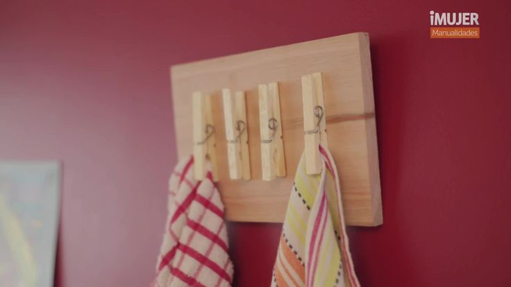 4. ? Una manera facil y linda de organizar los pañitos de la cocina o colocar recordatorios, solo es una maderita con ganchos de madera para ropa, lo puedes hacer sin pintar o decorado, como prefieras.