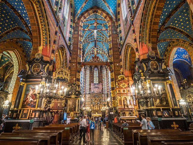 Las torres inclinadas de la majestuosa Basílica de Santa María dominan la esquina noreste de la animada plaza central de Cracovia. Esta iglesia ha adornado este lugar desde la época medieval. Pero la que podemos ver fue construida de ladrillo rojo en estilo gótico. Fue consagrada en 1320 después de que la original fuera destruida por los tártaros en el siglo 13. La torre norte fue elevada a 80 metros y se convirtió en la torre de vigilancia de la ciudad.