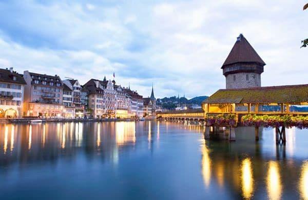 Lucerna, situada en la sección de habla alemana de Suiza, es una ciudad que lo tiene todo. La vida de la ciudad, un lago y las montañas. Además de ser uno de los lugares que ver en Suiza, está considerada una de las ciudades más bonitas del mundo. Lucerna es más famosa por su Puente de la Capilla del siglo XIV y la Torre del Agua. Que se dice que es el monumento más fotografiado en Suiza. Otro monumento famoso es el León moribundo. Este fue tallado de la roca para honrar a los mercenarios suizos que murieron en Francia en 1792. Los visitantes hambrientos pueden probar la Luzerner Chügelipastete. Una especialidad local hecha de hojaldre, ternera y champiñones en una salsa de crema.