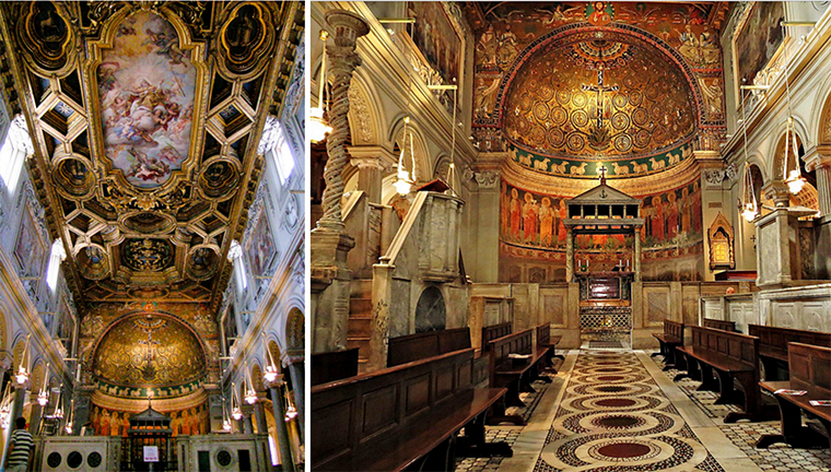 Este templo dedicado al Papa Clemente I es una pequeña iglesia rica en decoración con numerosos tesoros arqueológicos como pasadizos y mosaicos del siglo XII que nos hacen retroceder desde los inicios del cristianismo hasta la Edad Media. Desde su interior podemos acceder a la iglesia original del siglo IV enterrada bajo tierra entre la oscuridad y humedad del lugar. Además podemos ver los antiguos frescos que decoraban las paredes, fragmentos de mosaicos que cubrían el suelo y pasadizos a antiguas viviendas romanas construidas anteriores a la actual iglesia. Sin duda un paseo subterráneo hacia el pasado.