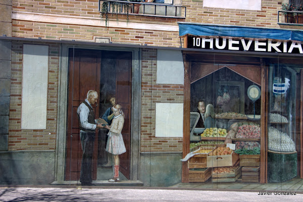 Do not miss the awsome work of murals and trompe loeil been painted by Alberto Pirrongelli along the facades of Navalcarnero (Madrid). In a job search, asking the neighbors of the town, I was finding here and there trompe loeil that this great artist has left in this city. It was hard work because they are not marked. I give you the sample that I found with their exact address so that you may find them more easily if you make a visit, but I have certainly left some still in the inkwell. Also in the final map and photos they are labeled A) through J) along a circular route that allows you to find sequentially as you walk through the village.