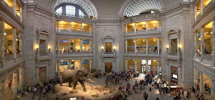 Este museo explora el mundo natural con exhibiciones para interesar a todas las edades. Las exhibiciones más populares incluyen el famoso Hope Diamond y la deslumbrante colección de gemas y minerales a su alrededor. El Ocean Hall con su impresionante fotografía submarina y réplica de una ballena franca del Atlántico Norte de 45 pies; y el Salón de los Orígenes Humanos, que sigue la evolución humana durante más de seis millones de años.