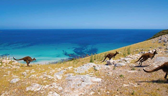 La naturaleza ocupa un lugar central en la hermosa Isla Canguro de la Península Fleurieu al sur de Australia. Los canguros brincan a lo largo de las costas, los leones marinos y los pingüinos retozan en las aguas cristalinas. Y los koalas se aferran a los fragantes árboles de eucalipto. El buceo también es excelente. Puedes ver muchos restos de naufragios que se encuentran en alta mar.