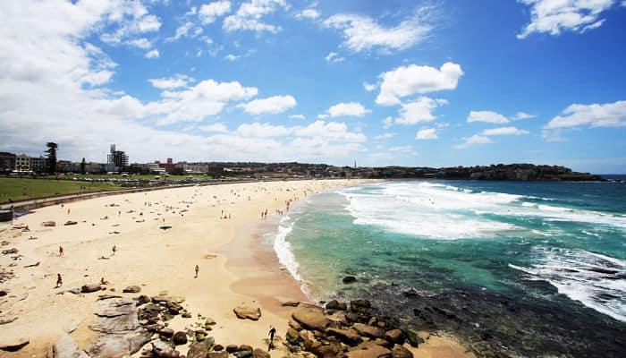 Arena rubia, mochileros y surf: ponlo todo junto y obtendrás una de las playas más famosas que ver en Australia. A solo 15 minutos en coche del centro de la ciudad, Bondi Beach es hogar de uno de los clubes de salvamento más antiguos del mundo. También es un excelente lugar para dar un paseo junto al mar o hacer un picnic. Multitudes de turistas y locales se reúnen aquí para celebrar la Navidad y el Año Nuevo.