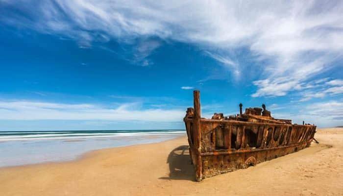 Es la isla de arena más grande del mundo y una de los principales lugares que ver en Australia. A lo largo de la playa azotada por el viento, se pueden ver los cascos oxidados de naufragios, los acantilados de piedra arenisca de Las Catedrales y las piscinas llamadas Champagne Pools.