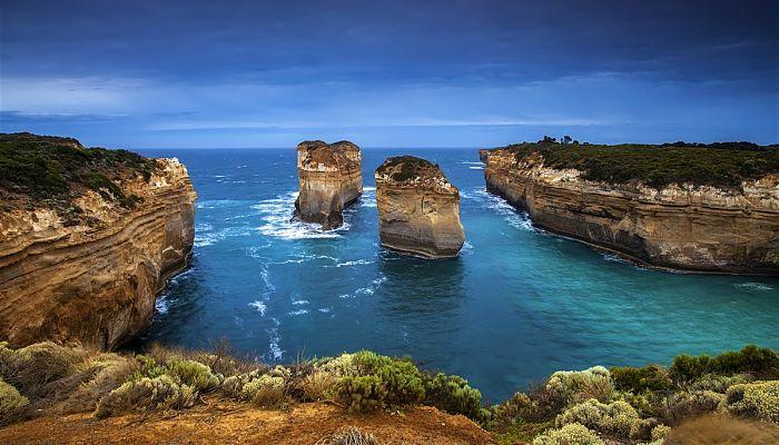 La mayoría de los principales destinos turísticos tienen rutas espectaculares. Y para Australia, una de las mejores es la Great Ocean Road. Construida para proporcionar empleo durante la Depresión, el camino se extiende por 300 kilómetros a lo largo de la costa sureste de Australia. La atracción principal a lo largo de la carretera es el Parque Nacional de Port Campbell, con formaciones rocosas esculpidas por el viento conocidas como los Doce Apóstoles. También el Puente de Londres, el Arco y el Desfiladero de Loch Ard.