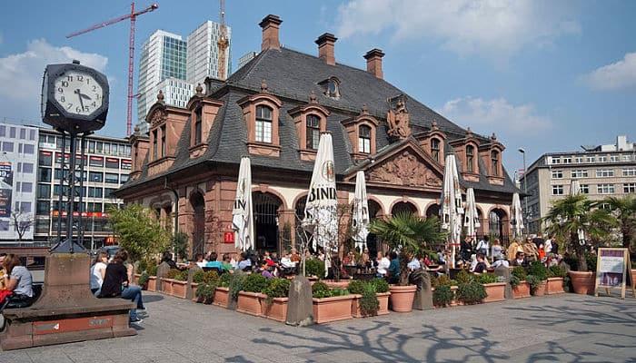 En el centro de la ciudad y una de las zonas peatonales más concurridas de Frankfurt, el Hauptwache, literalmente traducido, la Guardia Principal. Es famoso por su mezcla de bellos edificios históricos y estructuras modernas. El edificio más notable aquí es la antigua Casa de la Guardia Barroca, que da nombre a la plaza.