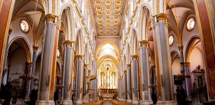Se remonta a finales del siglo XIII y aunque se ha alterado considerablemente, la entrada de 1407 ha sobrevivido. Puedes ver la suntuosa Capilla de San Gennaro del siglo XVII, patrón de Nápoles. En su altar mayor, un busto de plata contiene el cráneo del santo, que fue martirizado en 305. En el tabernáculo hay dos recipientes que contienen la sangre del santo.