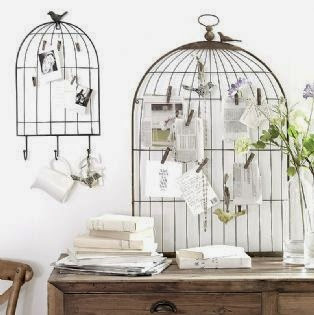Esta primera jaula decorativa es realmente preciosa y utilizada como el porta cartas más original bien encima de algún aparador o bien colgada a modo de lámpara baja.