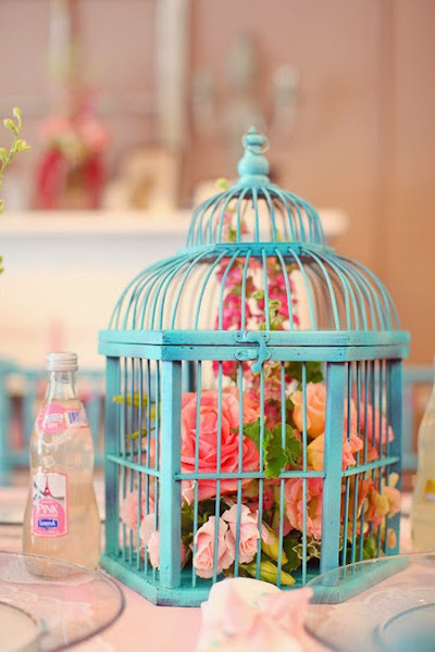 Todo un clásico el la decoración, jaula con flores, bien como elemento decorativo independiente o como centro de mesa (muy utilizado en bodas). ¡Desde luego el consiguen dar un toque especial a la mesa!