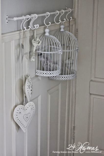 Las jaulas colgadas en el recibidor como un elemento decorativo más. ¡No me digáis que no quedan genial!