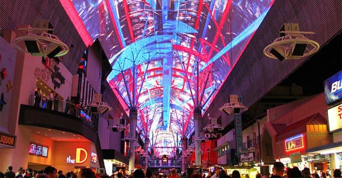 Aparte de la Franja, en el viejo centro de Las Vegas, está Fremont Street. Esta es una zona peatonal con todo tipo de sitios únicos. Una sección de cuatro cuadras de la calle Fremont ha sido cubierta con luces LED que iluminan el cielo con diferentes colores