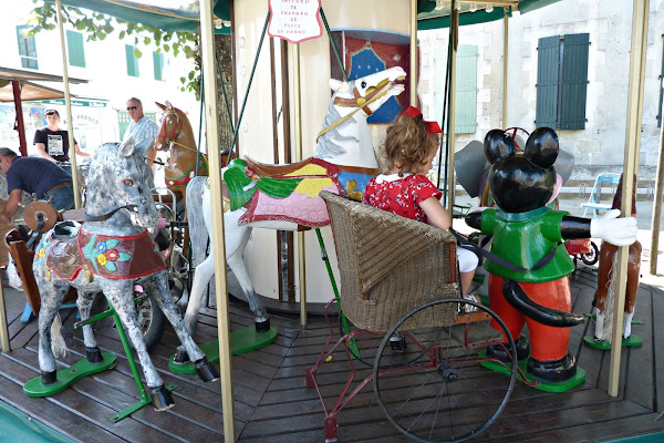 Carruseles; variados y diferentes. Da la casualidad de que en esta isla encontré el carrusel mas bonito que he visto nunca. Totalmente artesanal, y empujado con pedales de bici ¡Una preciosidad! , imagínate, a las pequeñas les encantó.