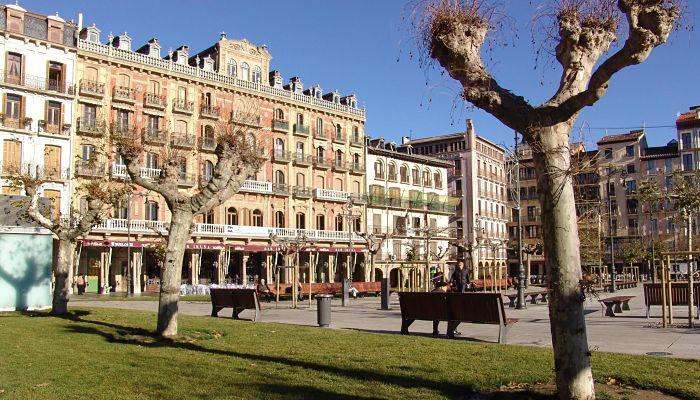 Elegantes edificios con balcones se alinean en la plaza y un mirador en el centro ofrece un agradable lugar sombreado para relajarse. En la esquina suroeste de la plaza se encuentra el Palacio de Navarra construido en 1847 y ampliado en 1932, que ahora es la Diputación Foral, sede de la asamblea provincial. En la magnífica Sala del Trono del palacio se encuentra un retrato de Fernando VII de Goya.