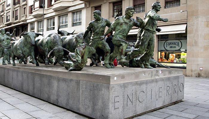 Cerca, en la Avenida Roncesvalles, se encuentra una llamativa escultura contemporánea llamada Monumento al Encierro. Esta obra única ilustra una espectacular corrida de toros, el deporte emblemático de Pamplona. Fue creada por el escultor de Bilbao Rafael Huerta Celaya en 1994. Tiene 11 metros de longitud y fue elaborada en bronce.
