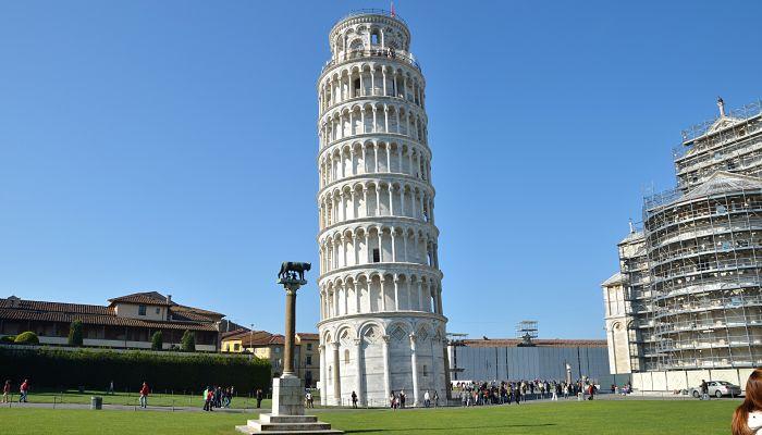 La Torre inclinada de Pisa es en realidad una de las muchas atracciones en la ciudad de Pisa. Pero su fama, obtenida por su defecto de construcción, es mundialmente conocida. El trabajo comenzó en la torre en el 1100 y el hundimiento, que condujo a su inclinación, comenzó cuando la torre alcanzó la tercera planta.
