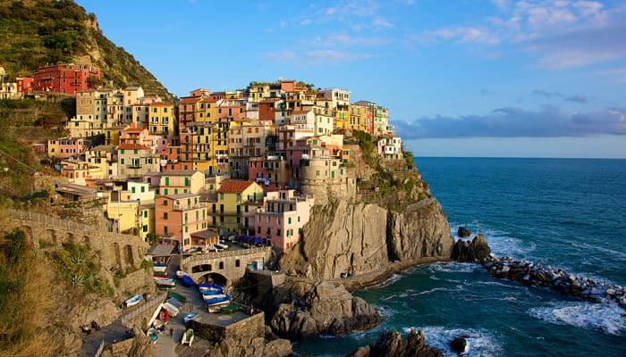 Cinque Terre, que se traduce como “Cinco Aldeas”, es una hermosa región costera con escarpados acantilados y colinas. A los pintorescos pueblos de Monterosso al Mare, Vernazza, Corniglia, Manarola y Riomaggiore se puede llegar por varios medios. Pero solo se unen entre sí por un pintoresco camino angosto a través de la ladera, o senderos para caminar.