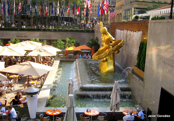 En la base de la Torre Rockefeller se encuentran los jardines de Prometeo donde en invierno los newyorquinos patinan en una pista de hielo que se instala todos los años.