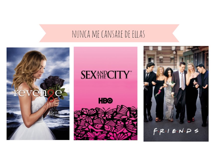 Por último, estas series que no podía dejar sin mencionar. Revenge que nos tuvo enganchadísimas a Moli y a mí, a parte de por su desarrollo por las pedazo mansiones de los Hamptoms que aparecen, La segunda, la mítica Sexo en Nueva York y por supuesto la serie de las series Friends; esa serie que somos capaces de verla cien veces y no aburrirnos, de la que nos sabemos los diálogos casi de memoria, la que nos hace comparar situaciones reales con las de la serie...en fin, la serie! De hecho, tenemos una teoría de que siempre resulta que nos cae bien la gente que le gusta Friends tanto como a nosotras. Alguna en la sala?