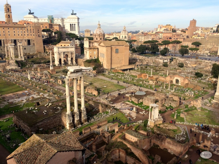 Justo frente al Coliseo, se encuentra el foro romano y el monte Palatino. La entrada al Coliseo (12€) incluye el acceso a estas dos atracciones turísticas. El foro era el lugar donde se encontraban las instituciones del gobierno, religión y comercio. El monte Palatino es donde nació la ciudad de Roma y donde se encontraban las casas de los romanos más adinerados y donde el emperador Augusto tenía su palacio. Desde lo alto del monte encontrarás una de las vistas más impresionantes de la ciudad con el foro a tus pies.