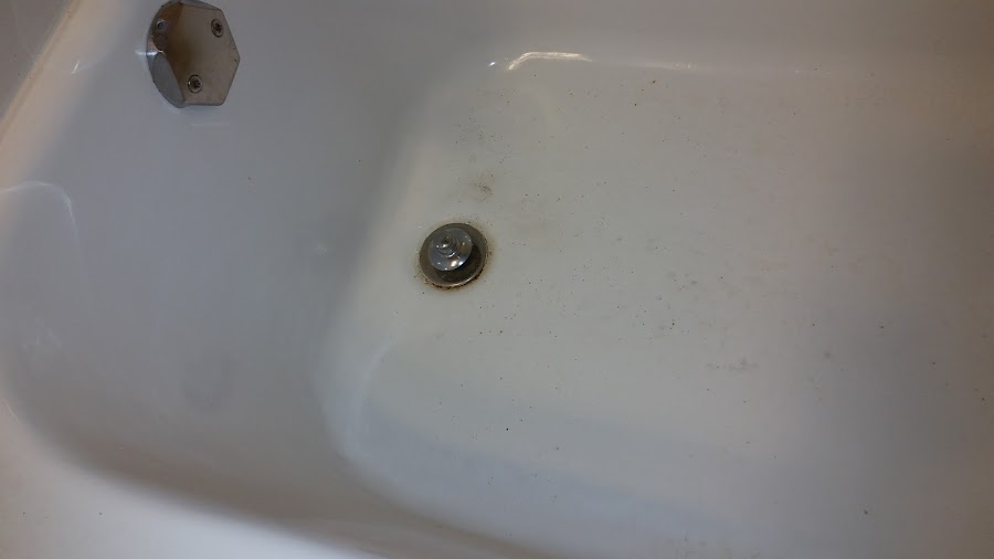 El día 5, cuando llegué, noté algo raro en la bañera: estaba llena de mijitas marrones, como de óxido. Con el cansancio que tenía decidí dejar el mal rato para el día siguiente e irme directa a la cama (era más de media noche). A la mañana siguiente, cuando me duché, pude observar con más detalle que había un reguero que bajaba por la pared y llegaba hasta el interior de la bañera. Mientras me estaba duchando empezó a salir agua de una pequeña portezuela cuadrada que había en el techo… genial.