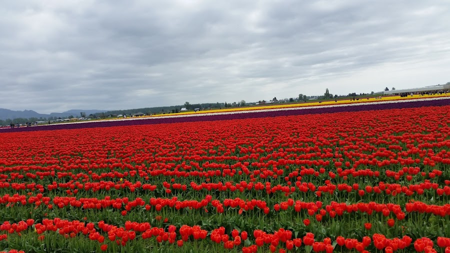 Mientras recorríamos las carreteras polvorientas pude descubrir que había niños vendiendo limonada con puestos improvisados en el patio delantero de su casa, había granjas de todo (mermelada, alpacas, árboles de navidad, tulipanes…), había graneros rojos como en las películas, todo parecía una película. Así ha sido mi primer viaje por carretera o roadtrip, como lo llaman aquí. Ha sido un plan de solo chicas con una compañera de mi trabajo muy apañada a la que llamaremos May y dos amigas suyas: una tailandesa y otra china. Hemos ido al Skagit Valley y al pueblo que hay más cerca: Mount Vernon. Para que os hagáis una idea, está a medio camino entre Seattle y Canadá. Por el camino hemos pasado moteles y carteles de casinos y reservas indias. Por esa zona, más hacia el interior, en las montañas, es por donde se rodó Twin Peaks, (en Snoqualmie), a ver si puedo ir a visitar esa zona.