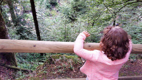 El paseo por su camino, bien preparado, consta de unos 7 saltos aproximadamente, no son muy altos, pero el paisaje es una preciosidad y las niñas se vuelven locas buscando las famosas ardillas entre tanto alto árbol, ¿donde estarían escondidas?.