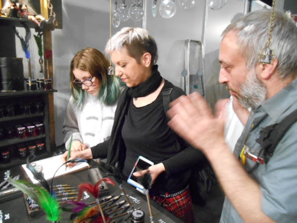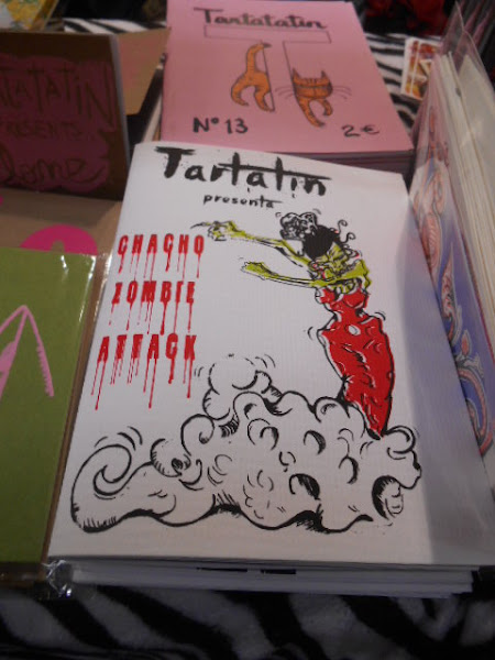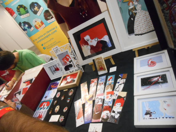 Puntos de libro de Pau Gámez, aquí en plena acción, Pau hizo unos dibujos para el libro de Jordi Marga y Chapi, "Dame Post y Dime Friki". Ejemplares de Mortadelo y Filemón y Tartatin presenta a la gitanilla zombie y como de Zombies y monstruos va la cosa, aquí tenemos a Dani Moreno y sus "Amazing Monsters", este chaval es genial, es polifacético, escribe, hace camisetas, ilustra, tiene un grupo de música, hace pelis, spots y cortos, maquillaje... es un máquina además de ser supermajete!!