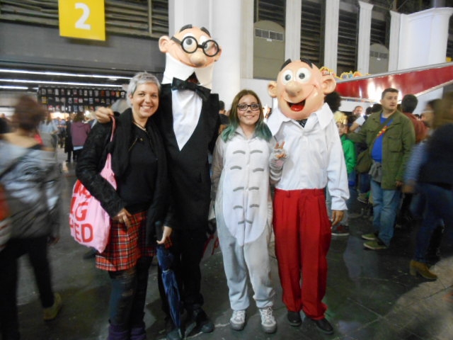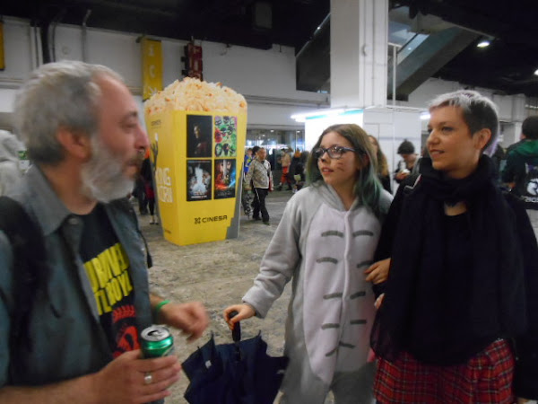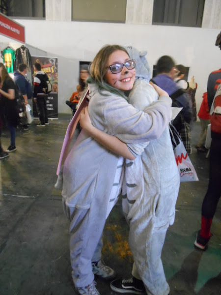 Y luego ya nos reunimos con las dos loquillas, Margot y Júlia que venía cosplaiada de Totoro, encontramos a muchos Totoros y a muchísimos apachurradores (como les llamaba Jordi, jajaja) chavales que regalaban abrazos se lo pasó genial la enana