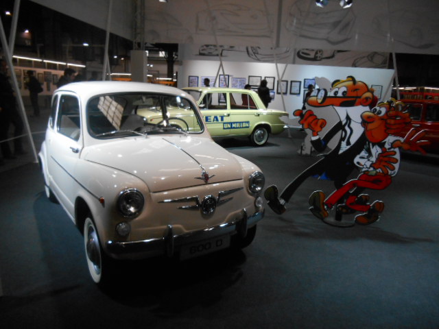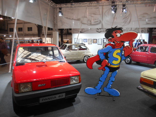 Pero igual disfrutamos del salón Nada más llegar fuimos a la expo de coches, mirad los Seats sencientos que molones, qué tiempos cuando rodaban los primeros por la calles del país, hasta había un seiscientos descapotable!! no ha llovido nada desde entonces... e ilustraciones de Mortadelo y Filemón con los coches y las portadas de la época, buscando a los Xunguis