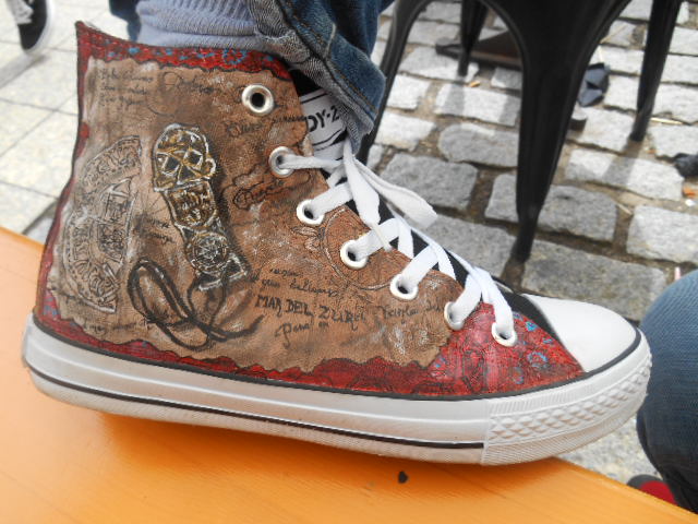 Y después a comeeeer, repetimos en Lady Buti, en la feria de scrap nos comimos unas buti de pincho que estaban de muerte y le comí tanto el tarro a Jordi que no se pudo resistir, les encantó, vamos que repitieron bocata y luego llegó Marga (sí sí, dos Margas y las dos de Santaco) estaba genial de Sloth quiere chocolate de los "Gonnies" (nos comimos todo el choco que trajo, jijiji!! y mirad que bambas más chulas llevaba de Mucho más que Zapas.
