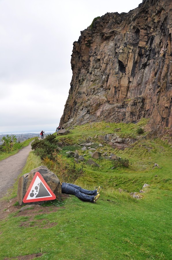 Pero aún queda una pequeña SORPRESA en este recorrido por Edimburgo. Como ya dije, no es apto para zapatos incómodos, si estas dispuesto a descender toda la Royal Mile y piensas que a partir de ahí ya no hay nada que ver, ¡estas equivocado! ¡Te esperan las mejores vistas de la ciudad, Arthur´s Seat!. Arthur´s Seat es una colina de unos 225m de altura, otro volcán apagado que vale la pena subir para ver toda la panorámica que te ofrece. (Me encanta la geografía de Edimburgo, un volcán al Este que contiene el Edinburgh Castle, una calle que desciende desde ese volcán hacia el Oeste, la Royal Mile, y que termina desembocando en otro volcán, Arthur´s Seat)