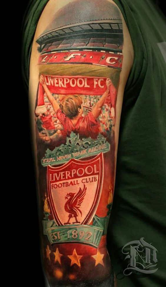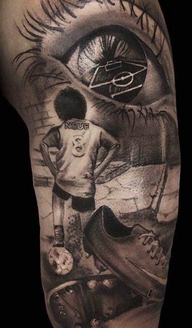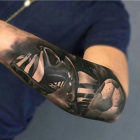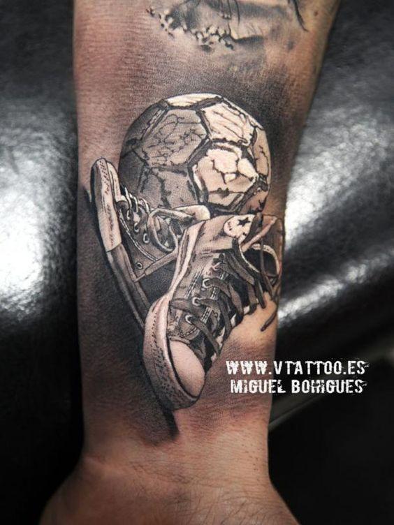 Los tatuajes de fútbol para hombres suelen ser más detallados y rudos.