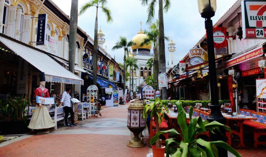 Una última recomendación para recorrer y conocer los lugares más emblemáticos de Singapur es la Sultan Mosque y la zona de Arab Street. La mezquita tiene su fotogénica cúpula dorada, y a lo largo de Arab Street encontrarás diferentes tiendas de recuerdos y café para descasar y disfrutar la tranquilidad del descanso en medio del paseo.