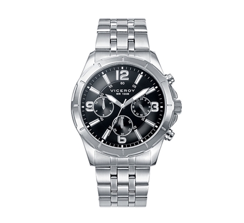 Reloj de hombre Viceroy, caja y brazalete de acero, esfera negra. Precio 89 €