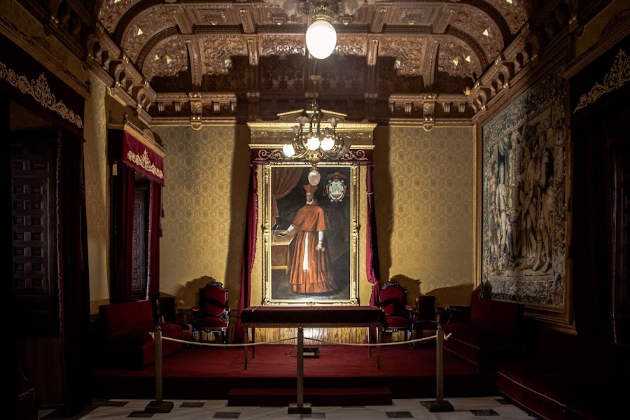 Yo destacaría tres cosas principales que ver: en el exterior, el pasaje elevado que comunica el edificio primitivo con la ampliación, en el interior, la iglesia con su retablo dorado y la Sala Rectoral, que es una estancia de aspecto decimonónico donde se celebraron los actos más solemnes del Real Colegio. Preside la sala un retrato del fundador Cardenal Silíceo.