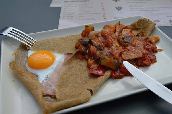 Pero si no ibas preparado para organizar un picnic, como fue nuestro caso, allí mismo tienes 4 restaurantes para poder comer o tomar algo. Nosotros aquel día elegimos uno en el que servían las típicas crepes saladas. Un poco pequeñas, pero muy ricas jiji.