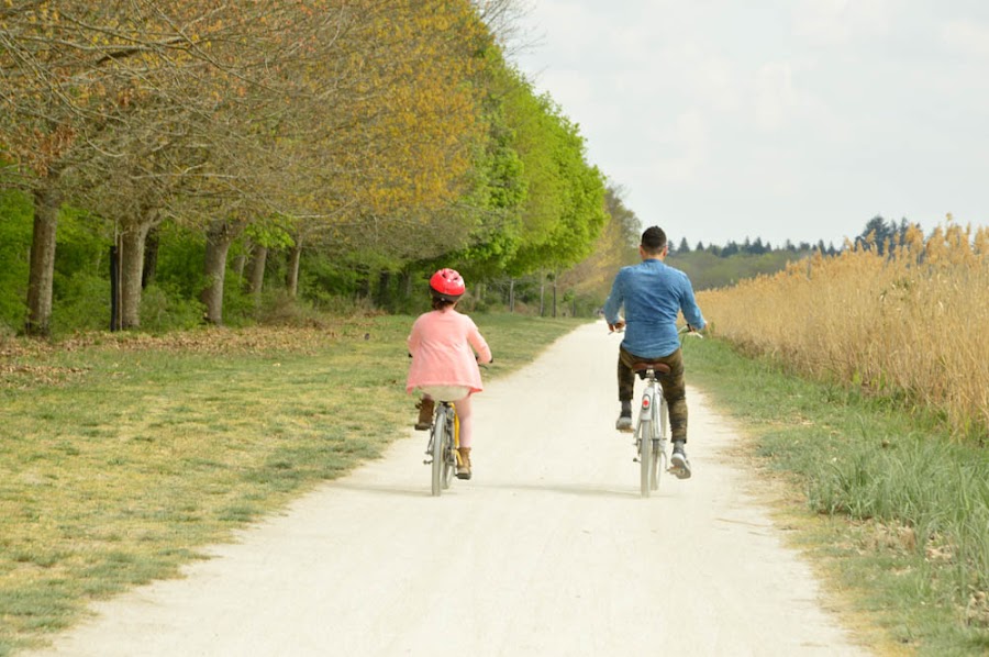 Una vez terminamos nuestro paseo por el lago que rodea el castillo, decidimos realizar otra de las actividades que más le gustan a nuestra hija; montar en bicicleta, así que con casco incluído, decidimos realizar otro ruta, también alrededor de Chambord, pero ésta vez por un bonito y preparado camino. También existe la posibilidad de alquilar un coche de pedales, otra opción muy simpática ¿verdad?. Hoy es el día de la niña, ¡Cuántas actividades! jiji