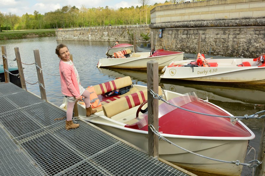 Aprovechando que no hace falta pagar para verlo por fuera, decidimos aprovechar y gastar el presupuesto que íbamos a dedicarle a las entradas, a realizar varias actividades para descubrirlo de diferentes formas. Una de ellas fue, montar en barquito. No te dejes engañar por la primera foto, porque aunque me veas con un remo, el barquito es eléctrico jiji. Nos encantó realizar esta pequeña excursión alrededor del castillo y como te puedes imaginar a la niña le divirtió muchísimo. Ésta actividad en concreto nos recordó mucho a la que hicimos en año pasado en Empuriabrava por sus canales. ¿recuerdas?.