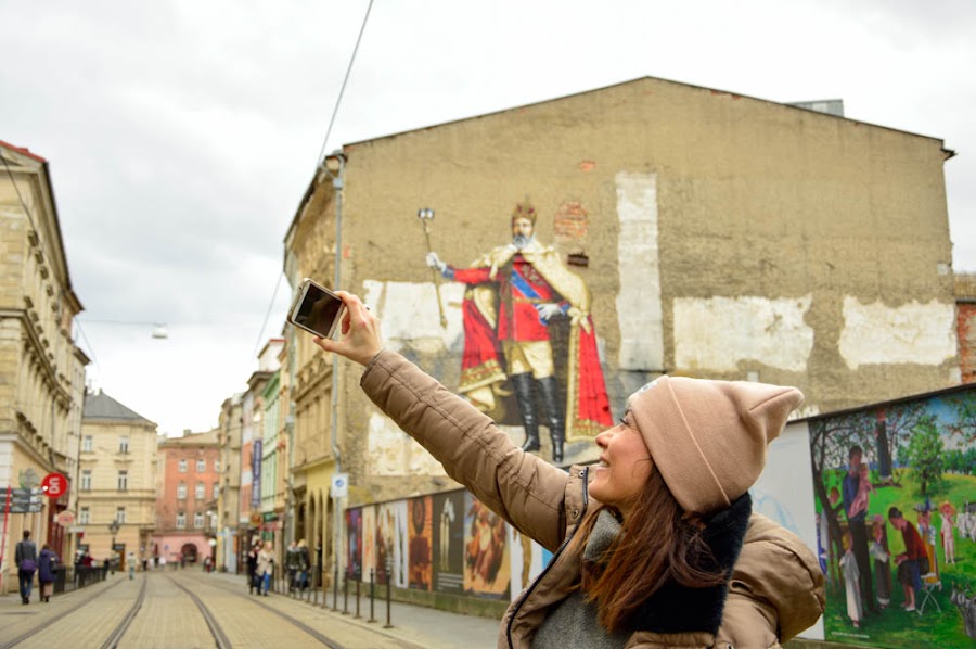 De camino a la plaza, encontrarás cultura y arte por todos sus rincones ¡Es increíble!, incluso en modo de ironía, y haciendo un guiño a la modernidad, encontrarás "cosas" tan curiosas como esta pintura realizada por un estudiante portugués, justo en el lugar donde van a construir el museo de arte moderno.