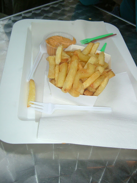 En la plaza principal de Brujas hay dos paradas que venden patatas fritas. Para nosotros son de las mejores que hemos comido!