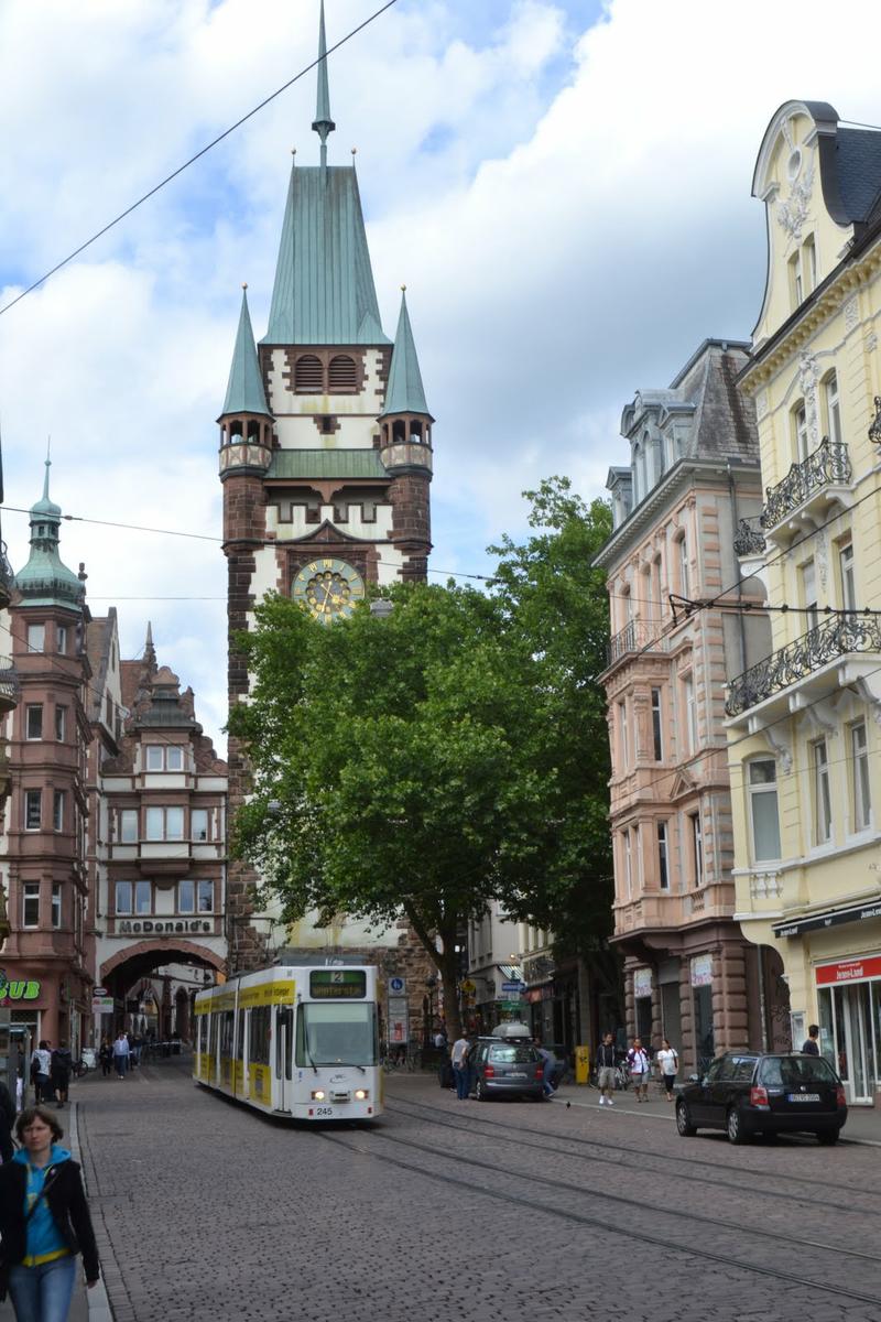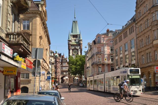 Se puede pasear sin riesgo de ser atropellado por un coche por el bonito centro peatonal de Friburgo, ver tiendas, la catedral y el mercado a su alrededor o las antiguas puertas del casco antiguo.