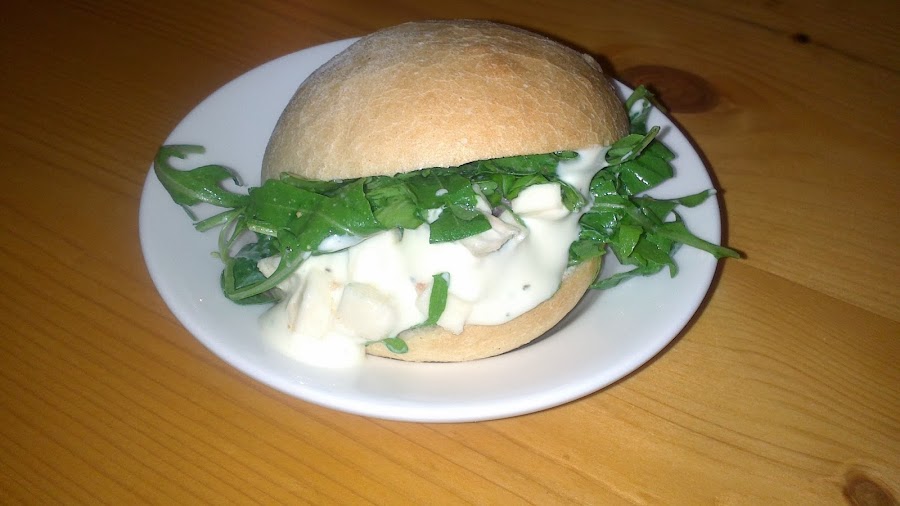 Bocatín de salmón ahumado y mozarella con salsa de yogur y cilantro