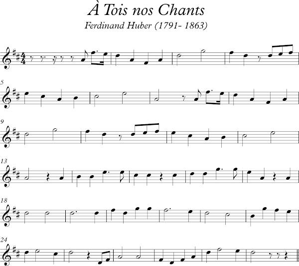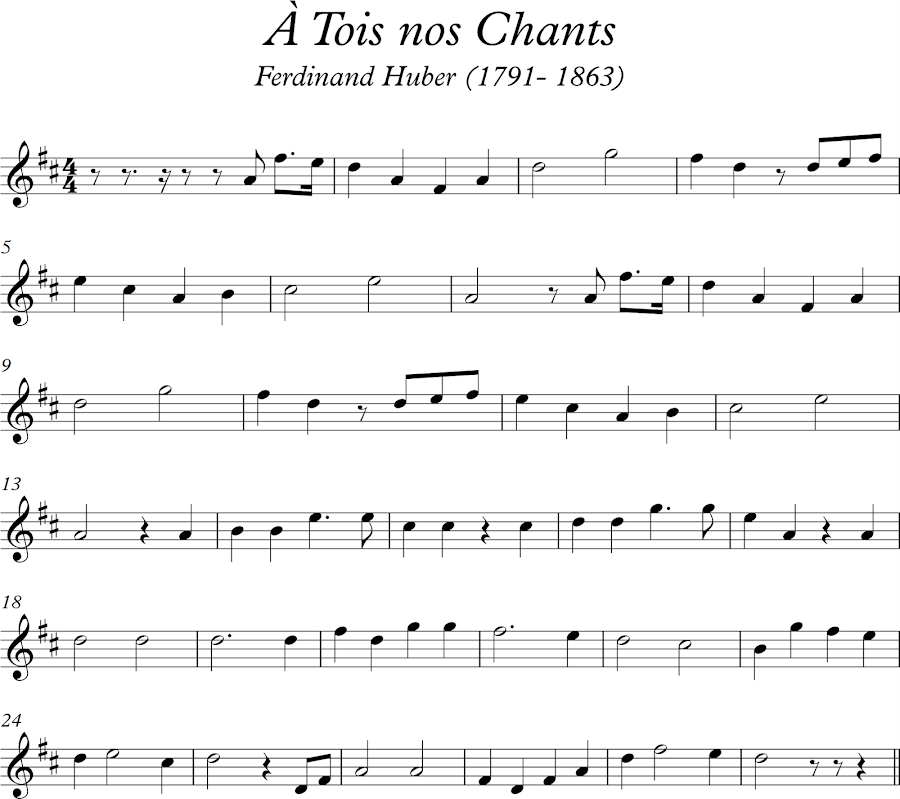 À Tois nos Chants. Partitura para flauta dulce. Canción Tradicional Suiza. Partitura que podemos trabajar a partir de 6º de Primaria con los alumnos.