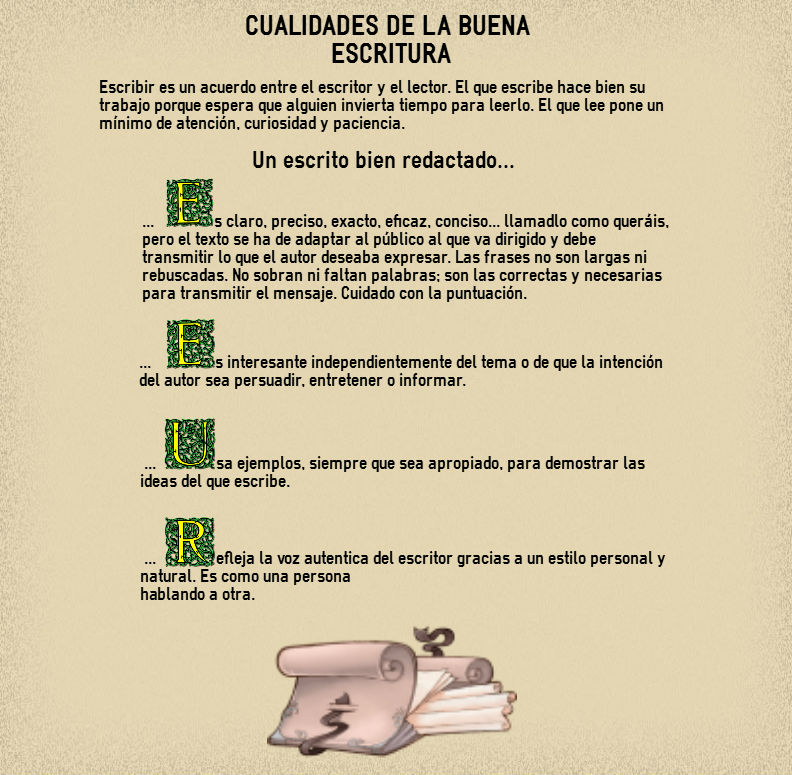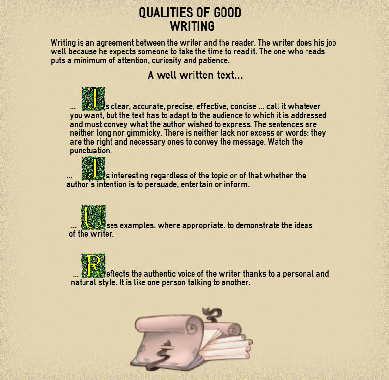 At the end of this post I include an infographic with qualities that should include a written text. Dont worry, we will learn all this as we go along.