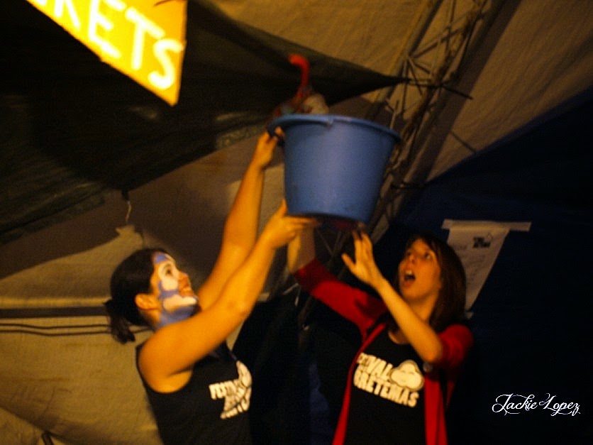Y ya una vez llegado a Ponteareas, solo tuve que cruzar la calle para ya dar el Festival. A la primera persona conocida que me encontré fue a Lydia, de Bolboreta, me alegre un motón al verla, estaba lloviendo y nos apresuramos a meternos bajo la carpa, la deje porque estaba preparándose para ensayar.