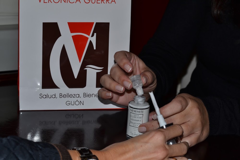 Lo que sí que me estoy aplicando en casa estos días es el tratamiento aclarador NEWHITE (de venta en el propio centro) para pieles pigmentadas, utilizando los productos tratantes con activos aclaradores indicados por Verónica para difuminar las manchas ya que, como sabéis, me encanta tomar el sol y, precisamente, uno de los factores que más influye en su aparición es una excesiva exposición (y he de reconocer que este año en particular me he pasado un poco).